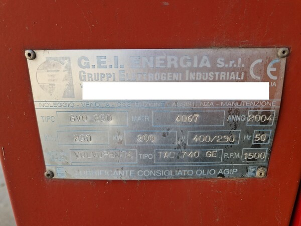 Gruppo elettrogeno Gei Energia srl, matr. 4067, anno 2004.