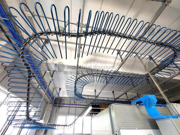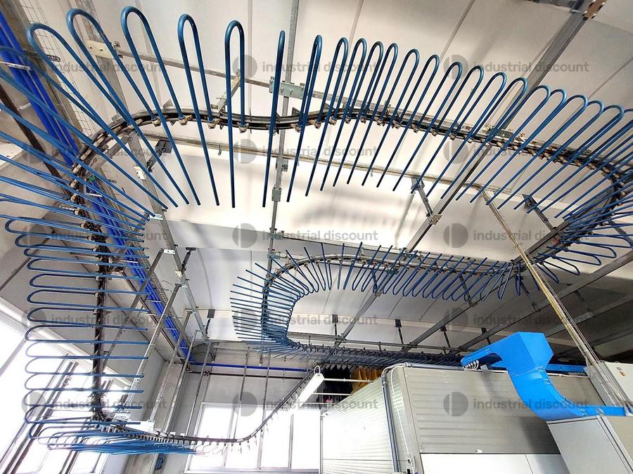 Impianto aereo a Catena - marca THEMA - con circa 550 ganci curvi in metallo, comprese le staffe e tiranti di fissaggio a soffitto