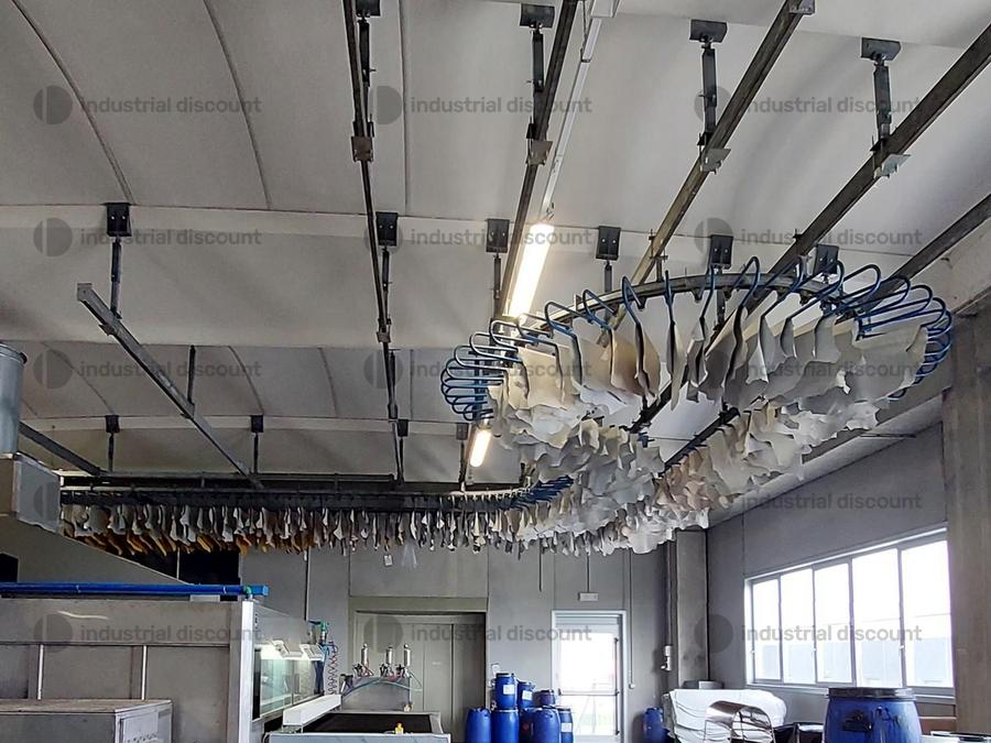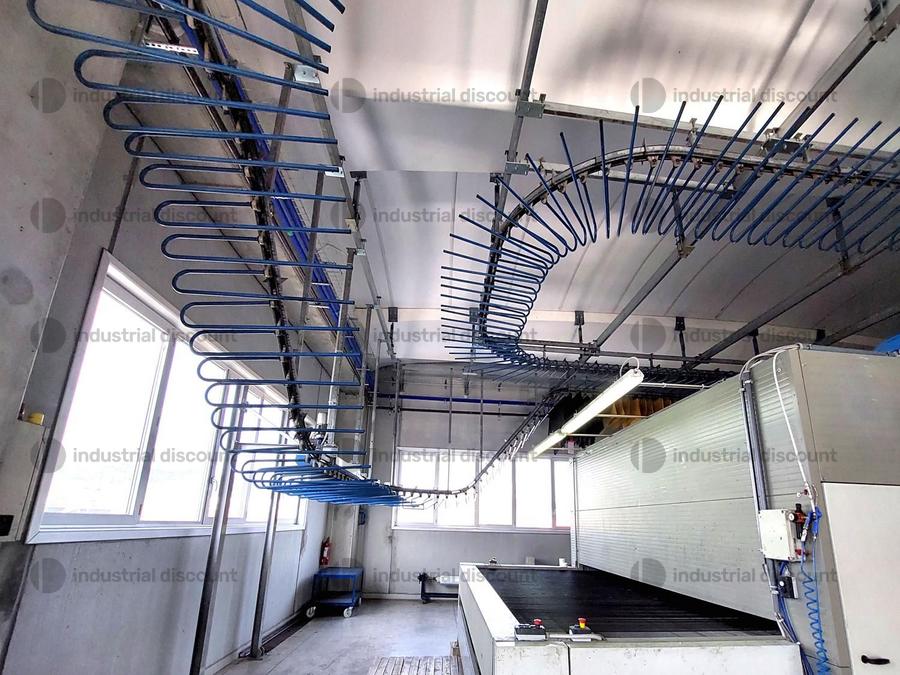 Impianto aereo a Catena - marca THEMA - con circa 550 ganci curvi in metallo, comprese le staffe e tiranti di fissaggio a soffittoNOTE VENDITA:- macchina situata al Primo Piano.NOTE PER RITIRO:- tempistica massima prevista per lo svolgimento delle attività di ritiro dal giorno concordato: 3 giorni- si consiglia di munirsi dei seguenti mezzi per il ritiro: Attrezzatura per smontaggio - Trabattello - Autocarro