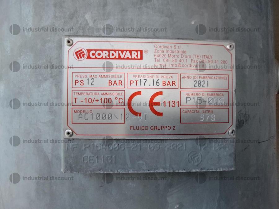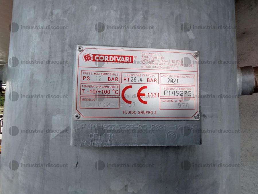Impianto aria compressa costituito da: Compressore a vite - marca KAESER - tipo SM11 - serie n° 1.9624.8/1962; n° 2 Serbatoi - marca CORDIVARI - tipo AC100\12VT - anno 2021