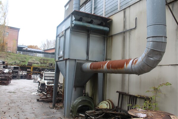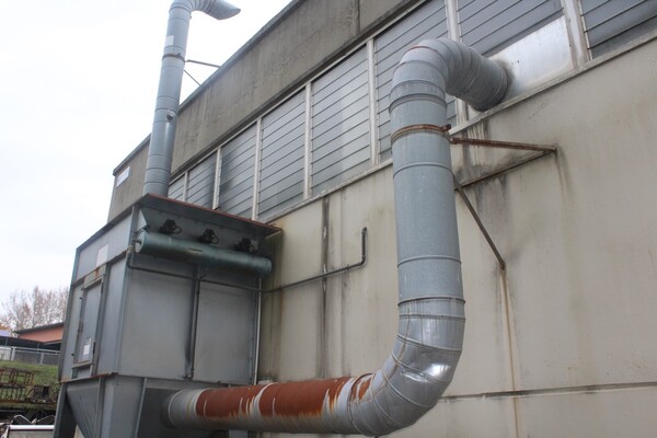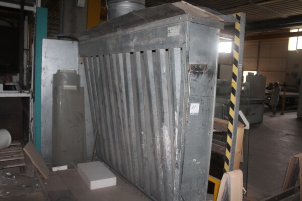 Lotto composto da impianto di aspirazione polveri CGS IMPIANTI anno 1997 mod.100/M matr.151/97 potenza m3/h 14000 potenza installata Kw 11 composta da: 1 parete aspirante dimensioni cm.260x40x200h, 1 piccola cappa aspirante cm. 160x40x80h, 1 cappa aspirante Fimas cm.300x40x200h, tobotrasporto aria cm 40, 1 filtro con maniche, 1 motoventilatore.