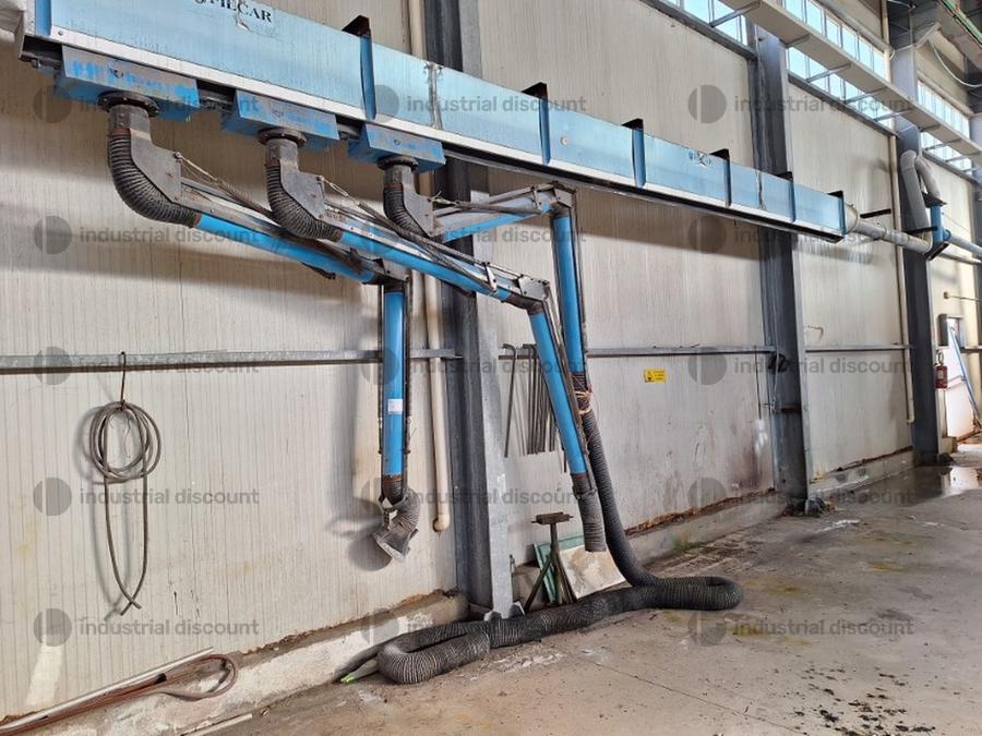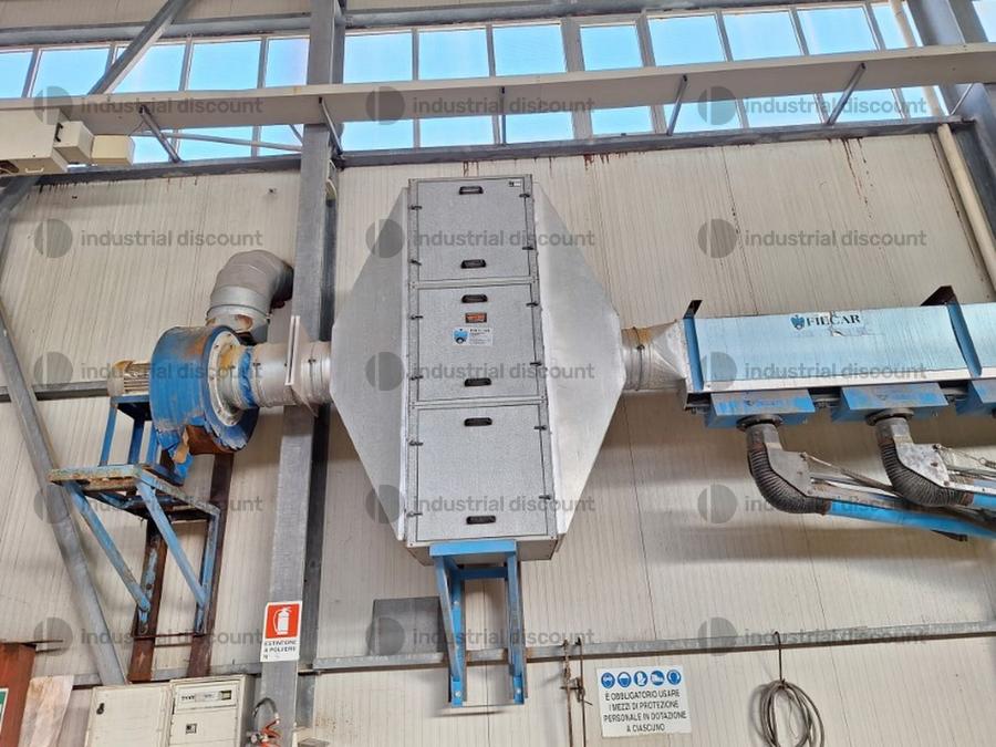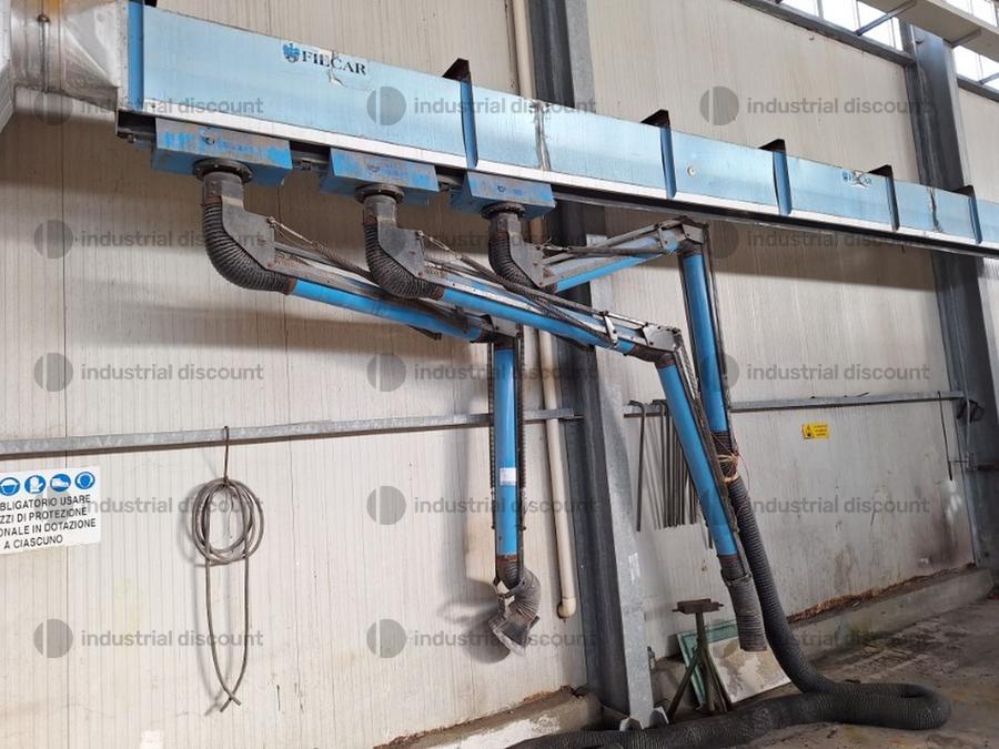 Impianto di estrazione delle polveri/fumi, marca Filcar, con sistema filtrante Star Filter Gingo e bracci Dynamic.