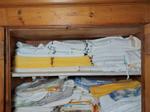 Lotto composto da: Lotto di lenzuoli bianchi gialli, lenzuoli misti e teli vari (n. 25) e Lotto di Centrini, Tovagliame, tovaglioli, strofinacci, etc. (n. 40)