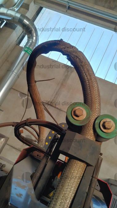 VENDITA DA AZIENDA ATTIVA Macchina cnc taglio tubo con plasma ad alta definizione Esab modello Suprarex 3100, anno 2020. Lunghezza massima del tubo 8000 mm Diametro minimo del tubo 100 mm Diametro massimo del tubo 750 mm Spessore minimo del tubo 3 mm Spessore massimo del tubo 20 mm Taglio con smusso e cianfrini a V e Y La macchina SUPRAREX SXE3100 è composta da: n. 1 corpo macchina principale equipaggiato da guide longitudinali e trasversali realizzati con sistemi a pignone / cremagliera di precisione e motori brushless. L'asse X, con lunghezza guide di 11.000 mm, è provvisto di doppia motorizzazione n. 1 mandrino ad asse sincronizzato per taglio tubi n. 3 carrelli per sostegno tubo, a posizionamento manuale tramite vite trapezioidale n. 1 carrello per generatore plasma ESAB iSerie300 con potenza massima di 300A n. 1 unità di taglio a smusso modello VBA WRIST con le seguenti caratteristiche: -rotazione +- 540° -regolazione angolo di smusso +- 60° -angolo di taglio a smusso +- 45° -velocita massima inclinazione 38°/sec -velocità posizionamento asse Z 4000 mm/sec -controllo tangenziale durante il taglio -possibilità di cianfrini a V oppure Y -sistema di protezione in caso di collisione torcia al plasma -controllo altezza torcia in tensione d'arco -controllo altezza torcia con piede tastatore per i tagli a smusso n. 1 generatore plasma iSeries300i con le seguenti caratteristiche: -corrente nominale erogata 300A -campo regolazione corrente 5/300A -tensione erogata 180V -alimentazione 380V 50/60Hz -fattore di servizio a 40°C 100% -Gas Plasma aria/O2/Ar-H2/No -Gas di protezione aria/No/O2/H2O -Peso 244 Kg -Dimensioni 1219 x 898 x 1031 n. 1 sistema di sicurezza realizzato tramite fotocellule n. 1 CNC ESAB VISION T5 con monitor a colori touch screen 18,5” (utilizzabile con guanti) con applicazione OpWizard di aiuto all'uso della macchina da parte dell'operatore per il taglio in piano n.1 software di programmazione ESAB TAGLIO TUBI Accessorio incluso nella fornitura: banco per il taglio in piano provvisto di lamelle, dimensioni 1.500 x 1.000 mm Scarica i documenti dalla sezione documentazione lotto
