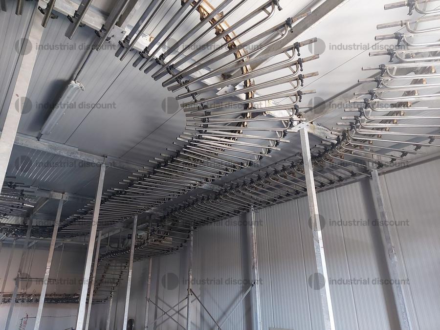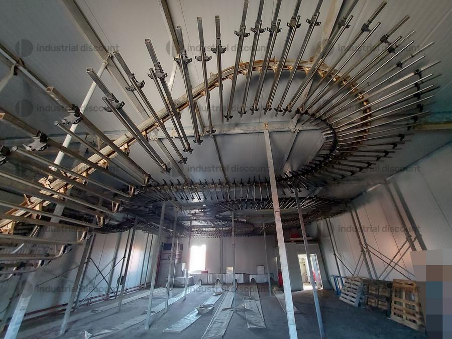 Lotto composto da manovia di montaggio calzature, completa di trasportatore meccanico ed impianti F.M. aria compressa, illuminazione e carrelli a 6 paia, lunghezza totale 28mt.NOTE PER RITIRO:- tempistica massima prevista per lo svolgimento delle attività di ritiro dal giorno concordato: 2 giorni