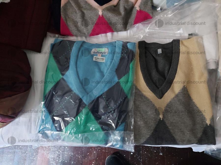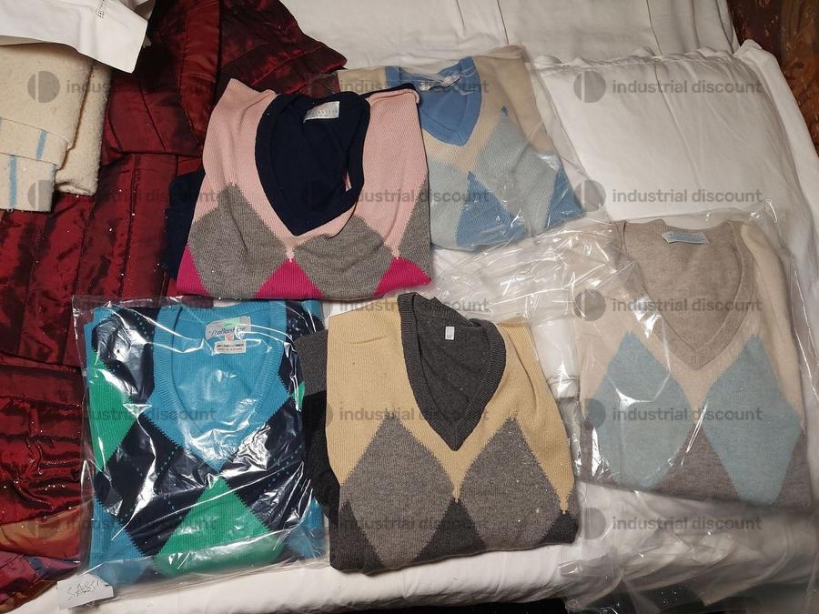 Lotto di abbigliamento uomo composto da: circa 30 tra maglioni, cardigan tra cui marca Ballantyne, disegno a losanghe con toppe ai gomiti (n. 124); maglie, camicie, capi spalla, etc. (n. 125)