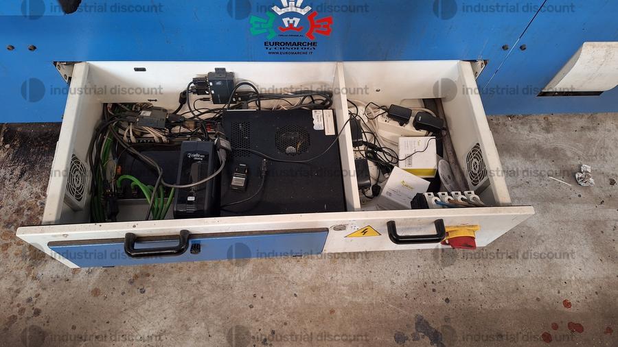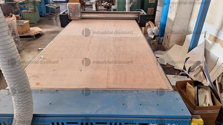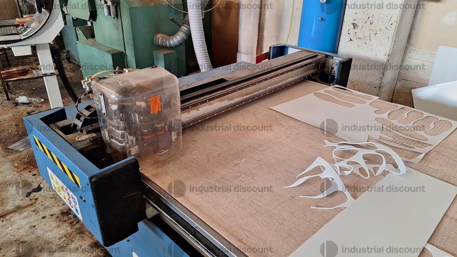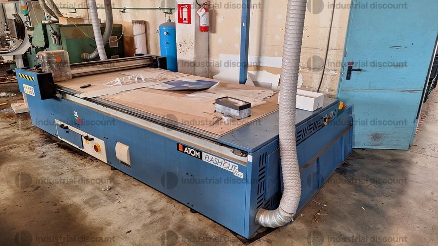 Lotto composto da macchina da taglio automatica Atom Flash Cut Flex completa di quadro comandi, due proiettori, serbatoio aria e tappeto nuovo per piano taglio.