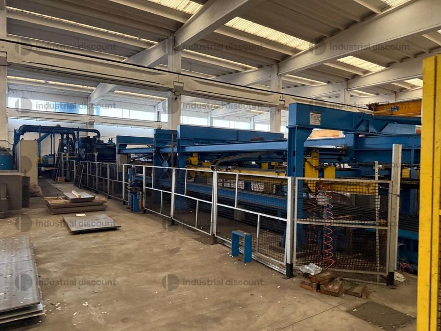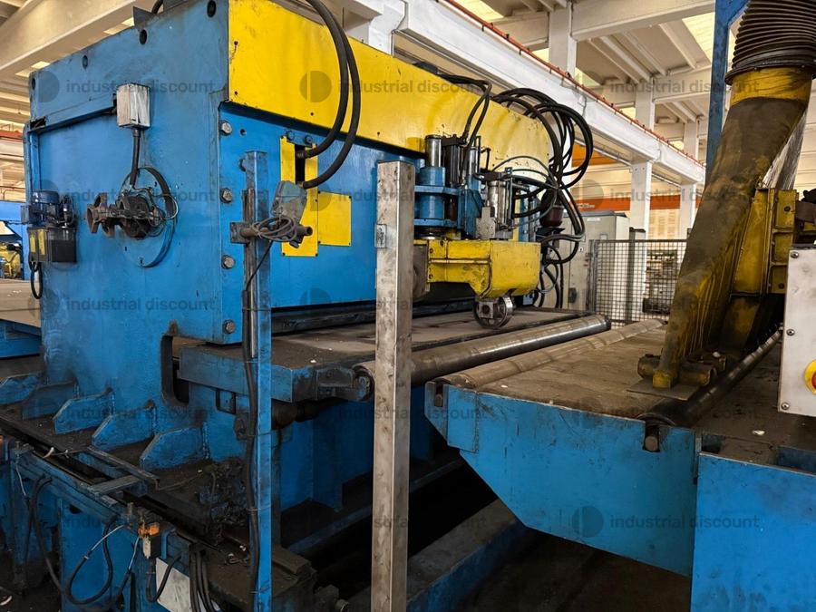 Macchina spianatrice FIMI mod. 1365 con linea coils laminati a caldo, aspo svolgitore, spazzolatrice, cesoia volante, gruppo impilatore, impianto di imballaggio automatico, pesatura, reggiatura e a completare Gru a bandiera a mensola BRENNA con pinza di sollevamento CONTE anno 2007, portata 1,0 ton, matr. 2464 serie 500, dis. 511/001 La linea ha solo alcune parti parti con certificazioni CE.