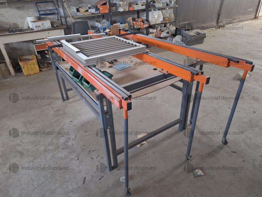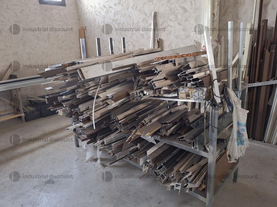 Macchinari attrezzature banchi lavoro per la lavorazione alluminio con profilati semilavorati e sfridi vari.