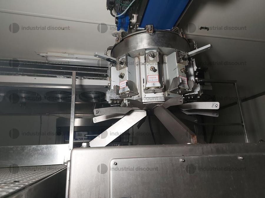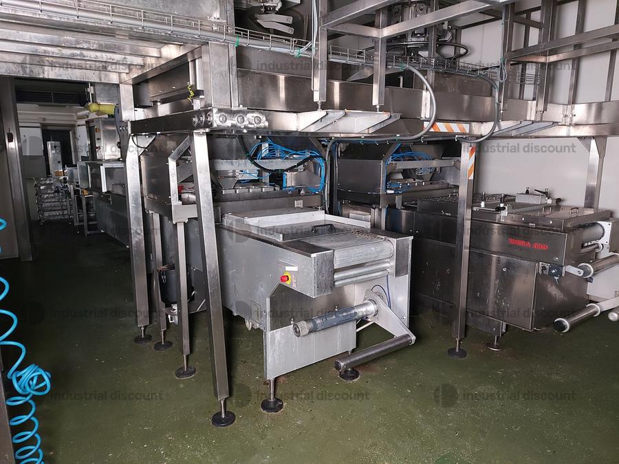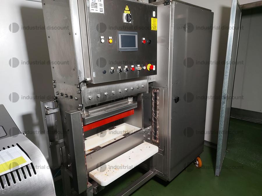 VENDITA DA AZIENDA ATTIVA Macchina formatrice per 'burger' - Sistema personalizzato per dischi di cioccolato / biscotti / tortine/ dischi di carne/ pesce/ vegetali. Questa macchina è stata progettata su misura per produrre dischi di cioccolato cilindrici con fogli di carta protettiva applicati su entrambi i lati, può anche produrre biscotti, biscotti con inclusioni di cerali o cioccolato, tortine, piccoli dischi alimentari e prodotti di forma simile, a seconda del materiale utilizzato come carne, pesce, verdure ecc.Descrizione del processoLa massa viene caricata nel contenitore principale in acciaio inox (vedi foto). Un sistema di formatura rotativo modella la massa in cilindri, con altezza regolabile per ottenere il peso desiderato del prodotto. I dischi di carta vengono applicati automaticamente su entrambi i lati e il prodotto finale viene espulso sul nastro trasportatore di uscita.Componenti della macchina Telaio di supporto principale Tavola rotante Doppi gruppi di alimentazione carta Pressa formatrice per dare forma al disco/biscotto di cioccolato Unità formatrice rotativa (altezza regolabile in base allo spessore/peso del prodotto) Pannello di controllo con comandi macchina completi Capacità produttive - Ideale per la produzione di: burger carne, pesce, vegetali, cioccolato/tortini Biscotti anche con inclusioni di cereali/cioccolato Piccoli dischi cilindrici di pasta o masse simili Spessore regolabile - Altezza del cilindro regolabile per il controllo del peso - La macchina funziona a 380 V e richiede un'alimentazione pneumatica.CondizioniMacchina in ottime condizioni, completa, racchiusa in una struttura protettiva e progettata per la lavorazione igienica degli alimenti. Include manuali di manutenzione e funzionamento Si precisa che il nastro trasportatore non fa parte della vendita