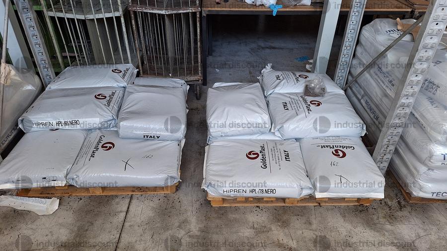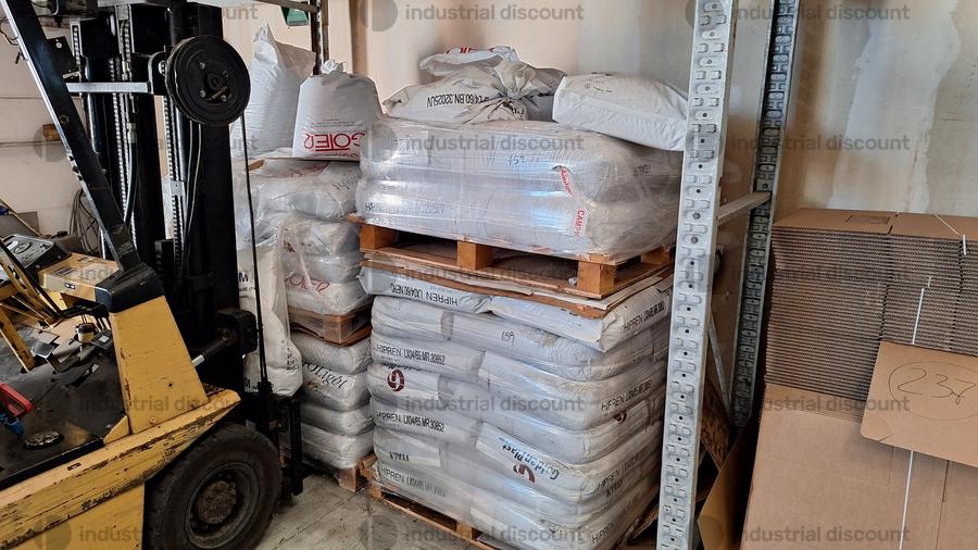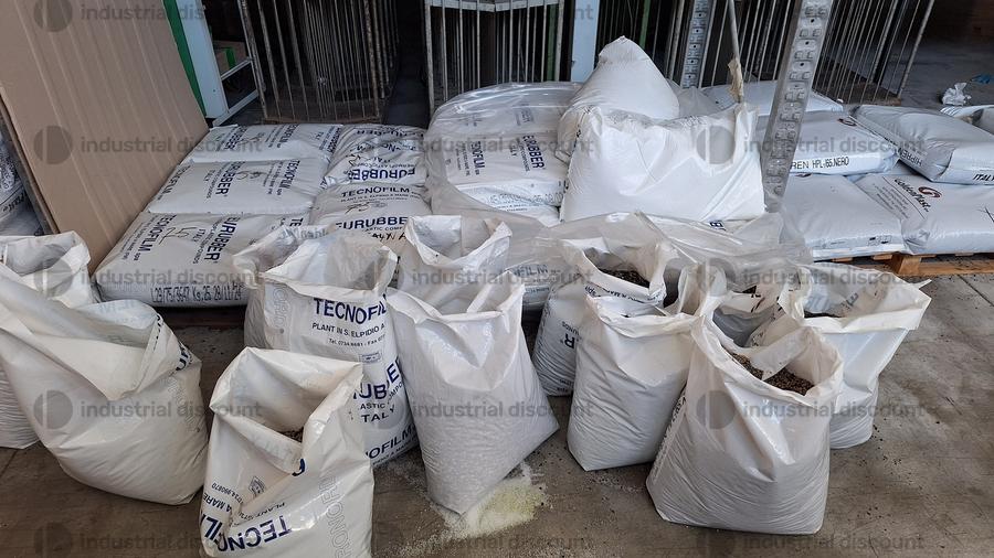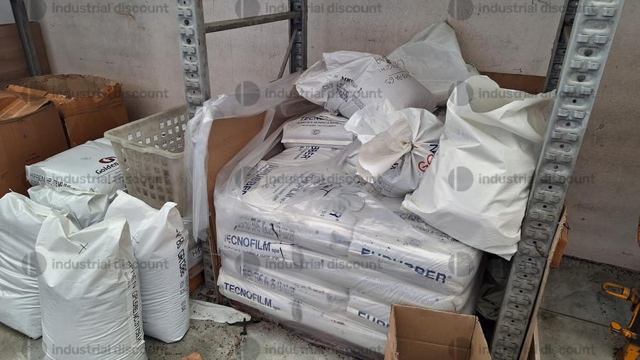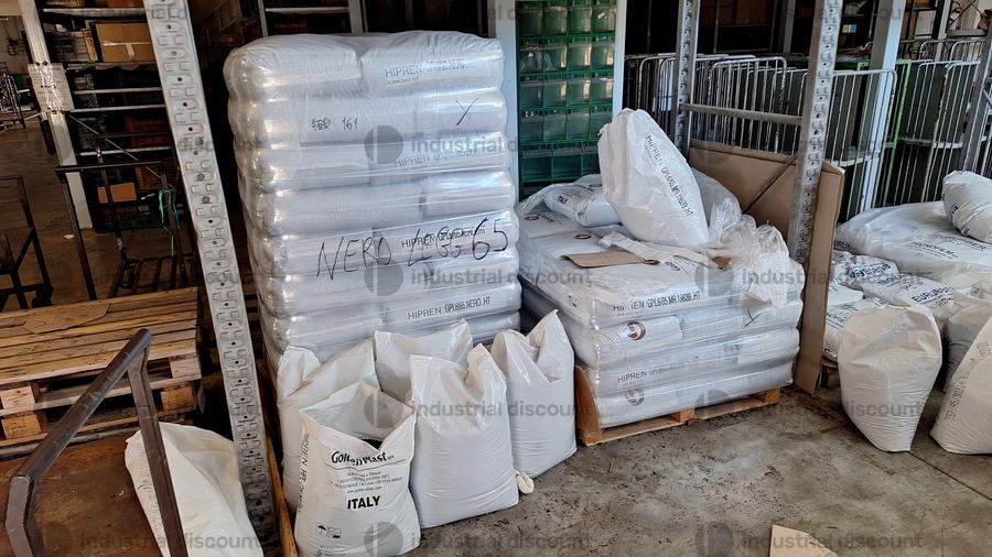 Lotto composto da giacenze di magazzino di materie prime per stampaggio plastica tra cui anche materia di scarto e rimacinato.