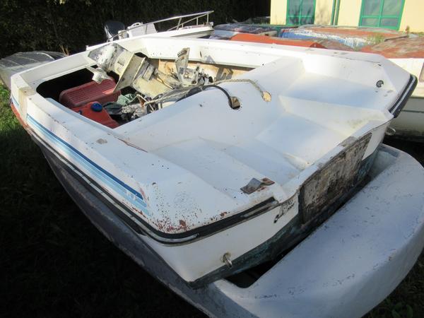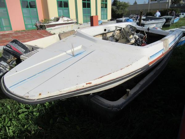 Natante da diporto colore bianco, lunghezza metri 3,80 sprovvista di sigle identificative + n.1 motore fuoribordo marca Suzuki da 25 CV.