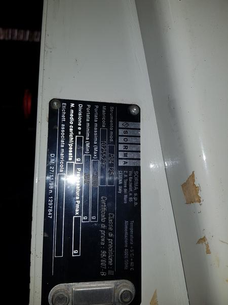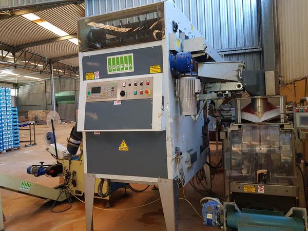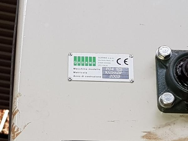 Macchina pesatrice automatica Sorma, modello P04 125, anno 2003 e nastro a rulli per il caricamento marca Sorma, modello PLS 123.