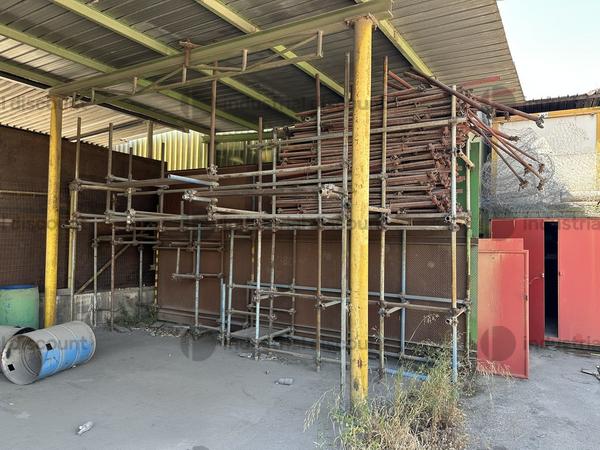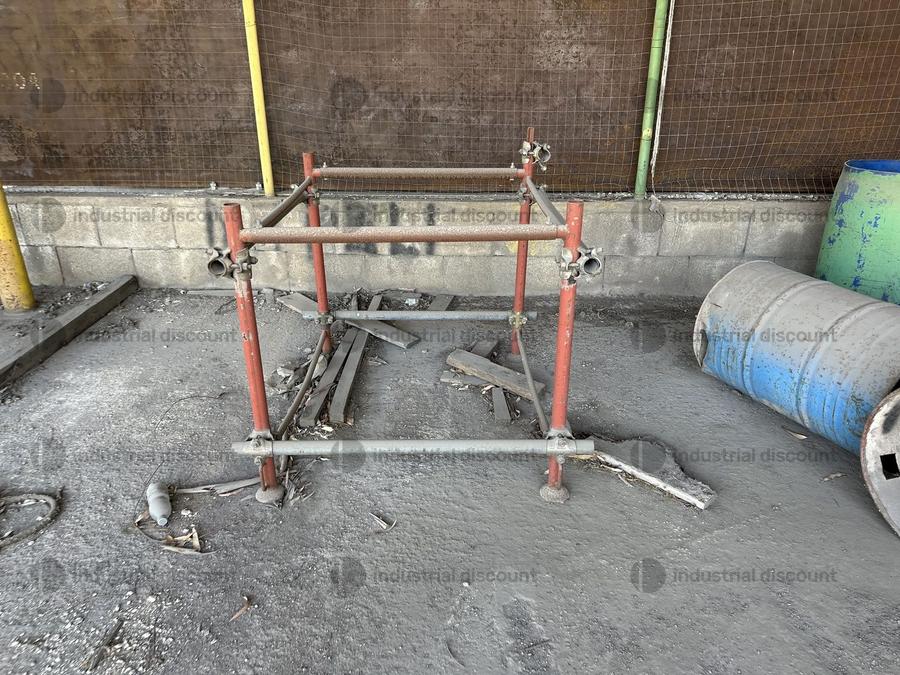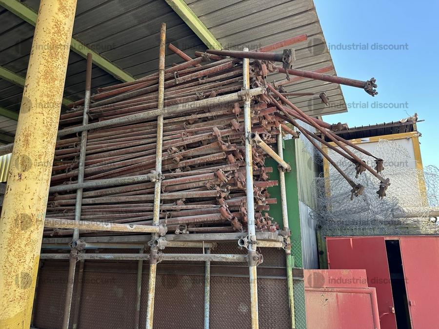 Lotto composto da ponteggi tubolari con cravatta a snodo e grigliati per ponteggi di dimensioni 0,665 m x 2 m di lunghezza.