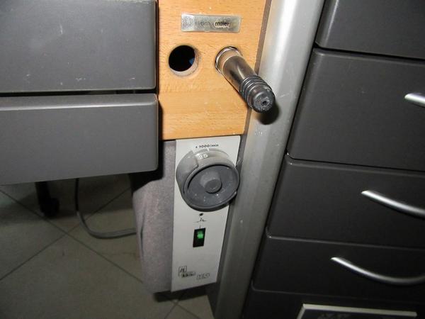 Lotto composto da: n.1 postazione da odontotecnico; n.1 lampada Stohm+Maier; n.1 micromotore Kavo; n.1 sedia.