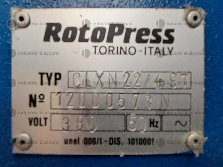 Pressa - marca ROTOPRESS - tipo CLXN 22/497 - n° 12000573N - dimensioni 360x210x180h circa - peso 4600 kg circa