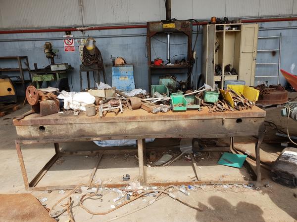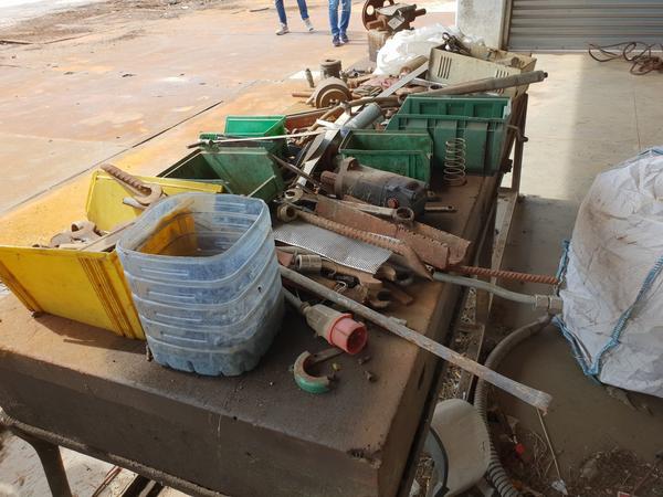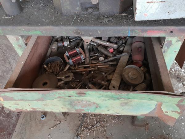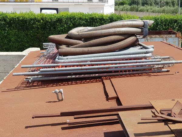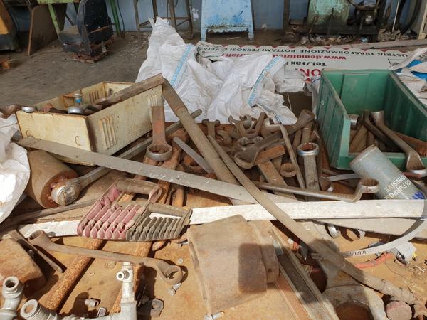 Lotto composto da rottami di ferro rottami di ferro, leghe ferrose, 2 troncatrici e rifiuti da smaltire come cesoie, cassoni, troncatrici Makita, serbatoi, pompe e molto altro.