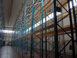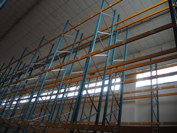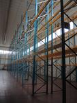 Scaffalatura metallica porta-pallet costituita da 12 montanti (altezza circa 8 metri) e 66 correnti (cm 270x14) per uno sviluppo totale di circa mt. 30, marca Arms, anno di costruzione 1997.