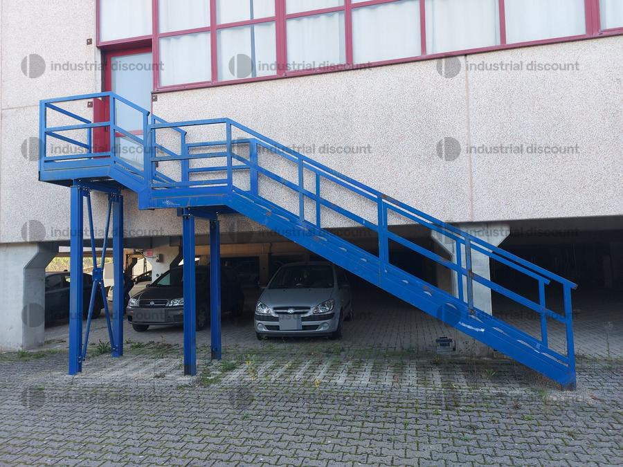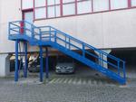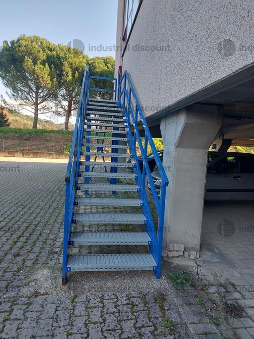 Lotto composot da n. 1 Scala esterna in ferro blu metri 6,70x1,05 circa con n. 18 scalini in metallo zincato