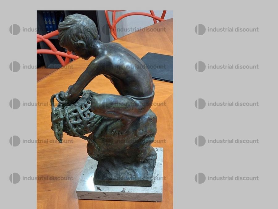 Lotto composto da una scultura in bronzo a tutto tondo raffigurante "Giovane pescatore con nassa da pesca sferica e polpo.