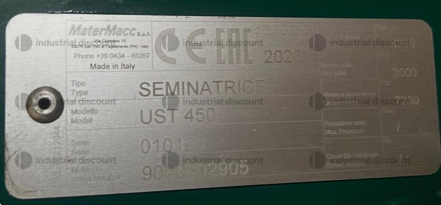Seminatrice Matermacc UST 450 con doppio cassone sementi + concime, sistema controllo semina ISOBUS, larghezza lavoro 4,5 mt