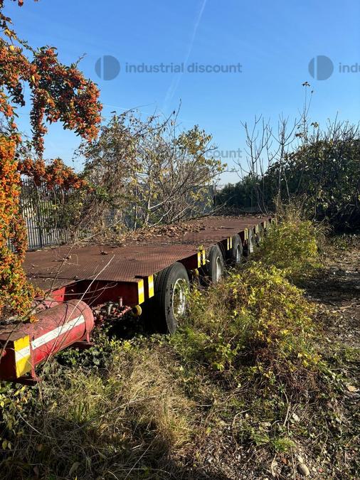 VENDITA DA AZIENDA ATTIVA S/rimorchio porta container allungabile marca: OMT modello: 3ST01 – PE anno di immatricolazione: 1997 s/rimorchio a tre assi con sospensioni pneumatiche. Assali ROR con freni a tamburo – 1° asse sollevabile. Dotazioni: parafanghi a norma paraurti posteriore fanali con luci di posizione pannelli retroriflettenti luci laterali d’ingombro protezioni laterali paraciclisti Pneumatici: n. 6 pneumatici 385/65 r22.5 a media usura n. 6 cerchi in ferro Dimensioni da carta di circolazione lunghezza: 8.735 mm larghezza: 2.500 mm Massa complessiva (ptt): 36.800 kgPortata utile: 30.150 kg telaio allungabile, di tipo scheletrato, attrezzato con mensole e twist locks per il trasporto specifico di container iso da 20’, 30’, 40’, 45’ e/o casse mobili a norma UIC, nelle varie combinazioni. Stato revisione: attualmente non in regola