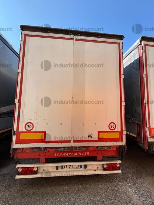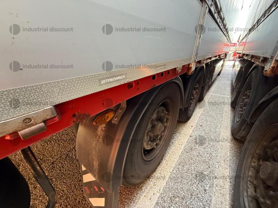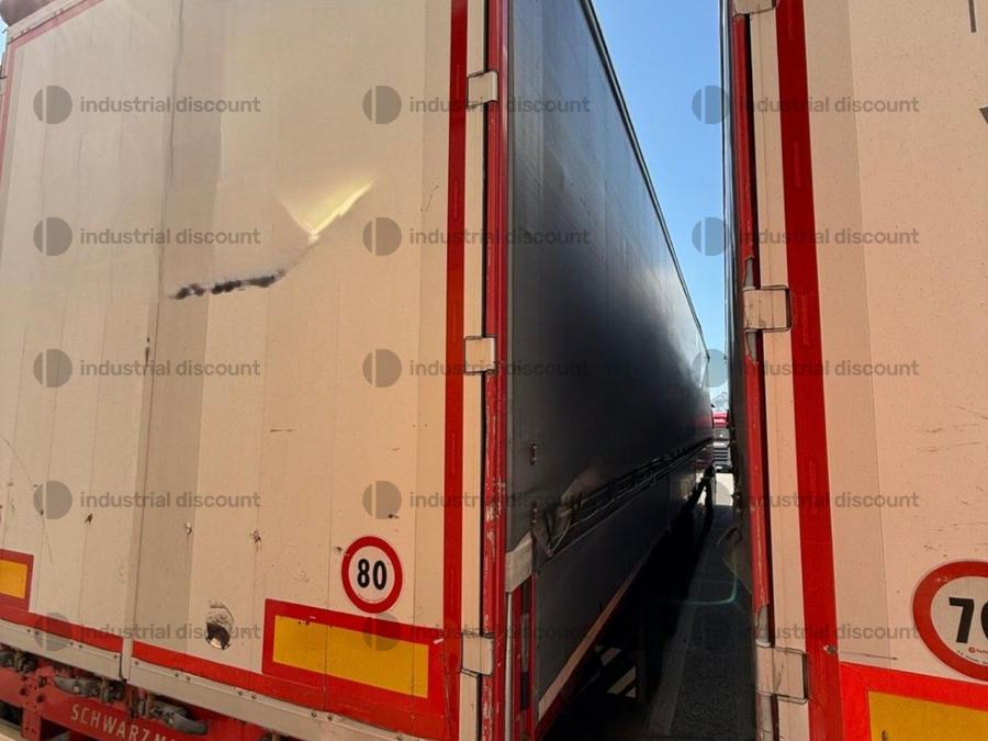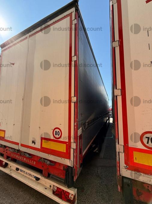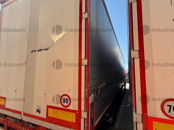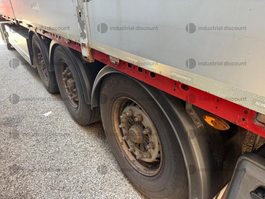 VENDITA DA AZIENDA ATTIVARimorchio Schmitz SO1 centinato alla franceseTargato AE22421Assali fissi Saf freno a disco, sospensioni pneumatiche, protezione posteriore paraincastro, mezzi parafanghi, luci laterali di ingombro, protezioni laterali para ciclisti, pannelli retro riflettenti. N. 6 pneumatici 385/65 R22.5 con 6 cerchi, porta cunei con cunei, porta ruota di scorta doppio a cesto. Nr. 2 Cassetti attrezzi. Dimensioni: lunghezza esterna: 13.900 mmlarghezza esterna: 2.550 mmTelaio zincato, fondo in pannello multistrato, ganci per ancoraggio del carico.Sponda anteriore para cabina altezza max rinforzata con lamiera interna. Piantoni centrali scorrevoli (3 + 3), nr. 2 file listelli laterali in lega, centina alza abbassa manuale idraulica a pompetta con spalliere laterali in alluminio (trave a L) tetto copri scopri, paracolpi posteriore. Porte posteriori gran Volume in lega leggera con 4 chiusure interne. Teli laterali scorrevoli colore nero. Chiusure con cricchetti e con tenditelo.
