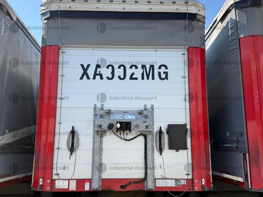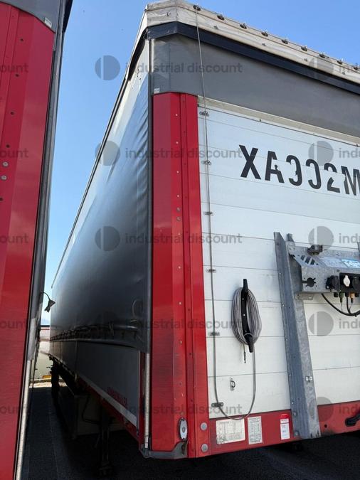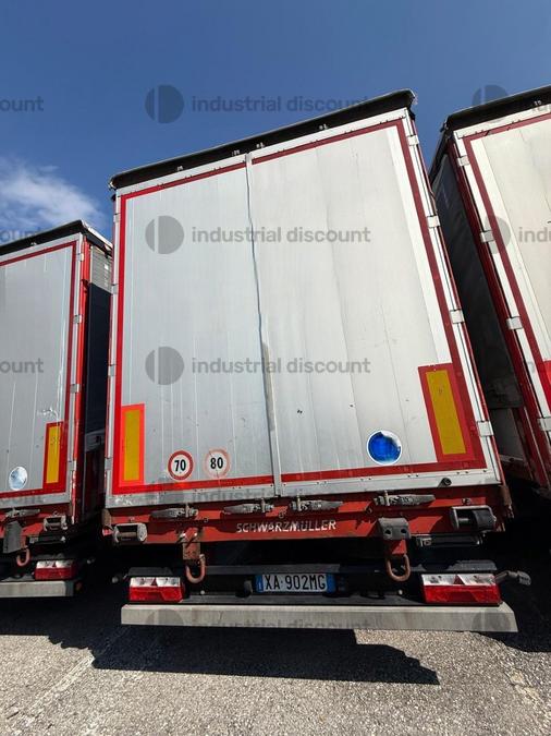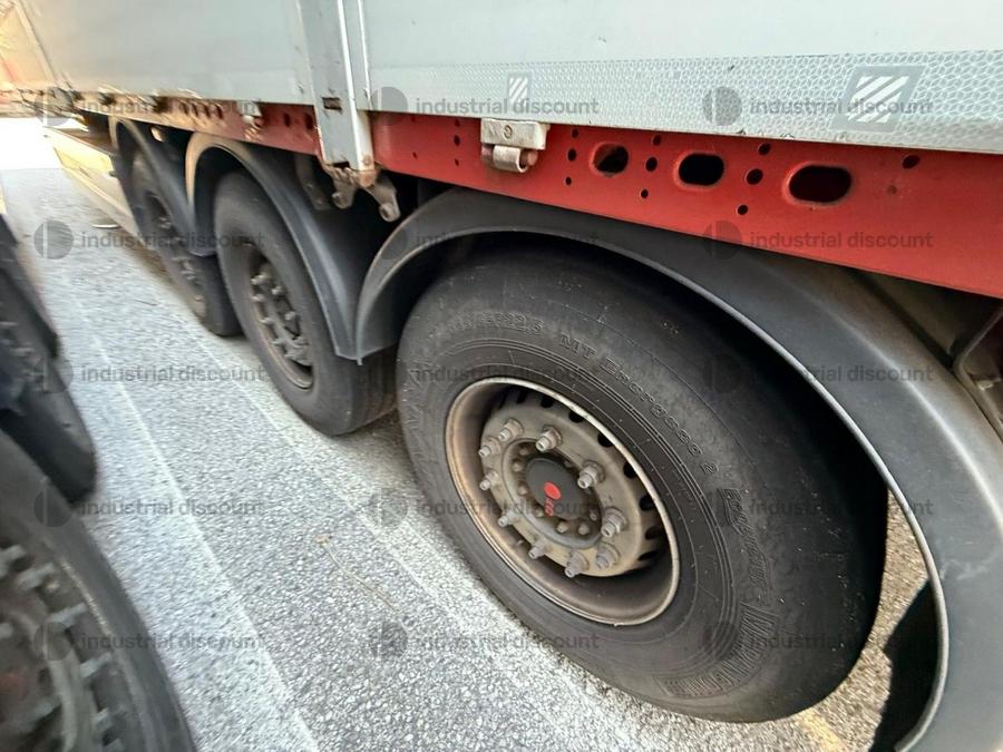 VENDITA DA AZIENDA ATTIVARimorchio Schmitz SO1 centinato alla franceseTargato AE22421Assali fissi Saf freno a disco, sospensioni pneumatiche, protezione posteriore paraincastro, mezzi parafanghi, luci laterali di ingombro, protezioni laterali para ciclisti, pannelli retro riflettenti. N. 6 pneumatici 385/65 R22.5 con 6 cerchi, porta cunei con cunei, porta ruota di scorta doppio a cesto. Nr. 2 Cassetti attrezzi. Dimensioni: lunghezza esterna: 13.900 mmlarghezza esterna: 2.550 mmTelaio zincato, fondo in pannello multistrato, ganci per ancoraggio del carico.Sponda anteriore para cabina altezza max rinforzata con lamiera interna. Piantoni centrali scorrevoli (3 + 3), nr. 2 file listelli laterali in lega, centina alza abbassa manuale idraulica a pompetta con spalliere laterali in alluminio (trave a L) tetto copri scopri, paracolpi posteriore. Porte posteriori gran Volume in lega leggera con 4 chiusure interne. Teli laterali scorrevoli colore nero. Chiusure con cricchetti e con tenditelo.
