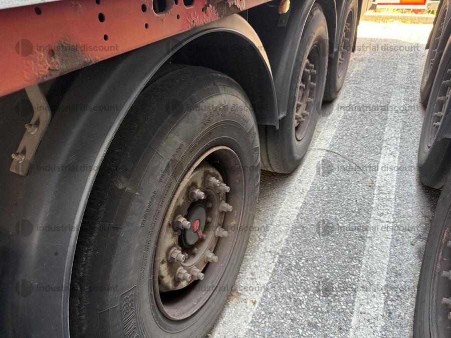 VENDITA DA AZIENDA ATTIVARimorchio Margaritelli Italia spaADR TIPO: FL-OX-AT –EX/II - EX/IIIImmatricolato: 2007Targa: AE37875Telaio: ZGPM300010Y003340 Assali SAF con freno a disco, terzo asse fisso, primo asse sollevabile, sospensioni pneumatiche. Protezione posteriore para incastro. Parafanghi a norme. Luci laterali di ingombro. Protezioni laterali para ciclisti. Porta ruota di scorta doppio a cesto. Porta listelli sotto telaio. Dimensioni:Larghezza esterna: 2.550 mmAltezza utile interna 2710 mm collo da 120 mmptt 38000 kgportata utile 31300 kgLunghezza esterna: 13.720 mmBUCA COILS da mt 8.90 con sedi per piantane e piantane interno buca. Fondo in pannello multistrato marino. Ganci per ancoraggio del carico. Sponda anteriore para cabina altezza massima in acciaio rinforzata internamente con pannello multistrato. Centinato alla francese. Piantoni centrali scorrevoli ( 3 + 3 ). Nr. 5 file di listelli laterali in legno. Centina Alza abbassa a leve nei 4 angoli con spalliere laterali in alluminio (trave a L) - Tetto copri scopri. Paracolpi posteriore. Porte posteriori altezza massima gran Volume con 4 chiusure interne. Teli laterali scorrevoli con tenditelo colore grigio con chiusura cricchetti in acciaio diretti. Revisione annuale scaduta Scarica i documenti dalla sezione documentazione lotto