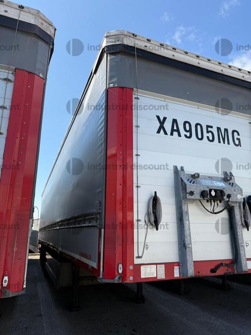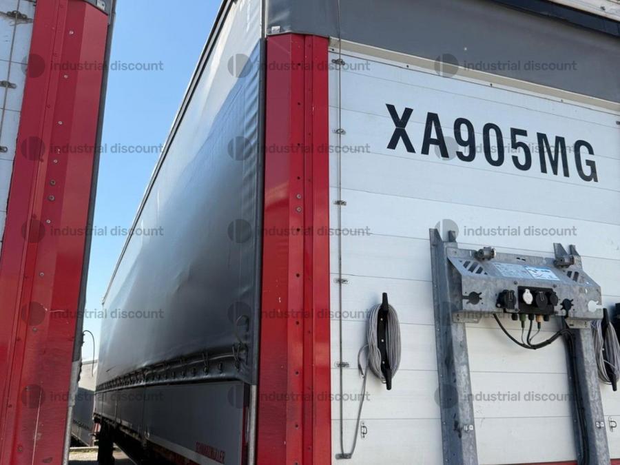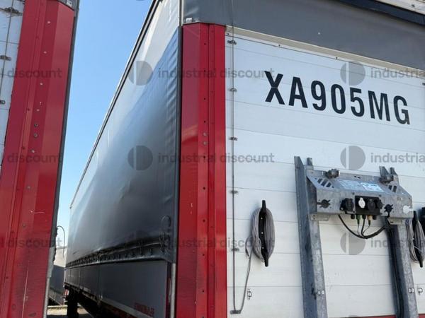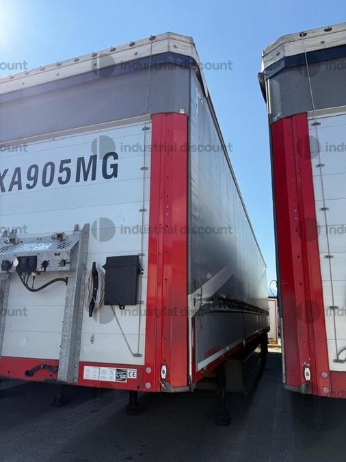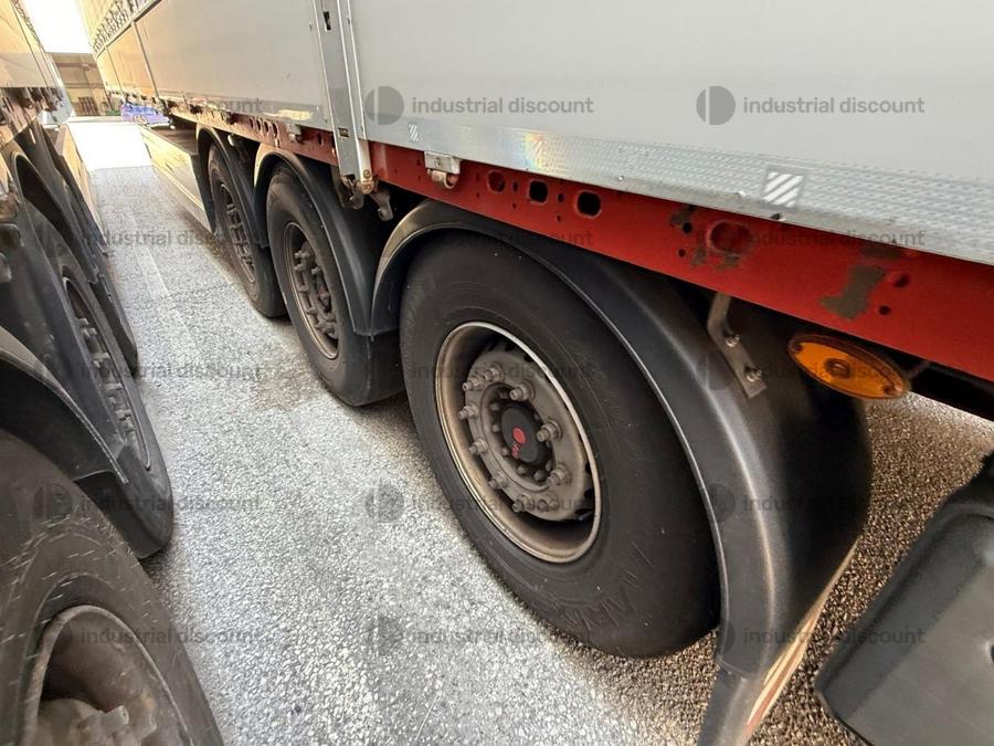 VENDITA DA AZIENDA ATTIVARimorchio Schmitz SO1 centinato alla franceseTargato AE22421Assali fissi Saf freno a disco, sospensioni pneumatiche, protezione posteriore paraincastro, mezzi parafanghi, luci laterali di ingombro, protezioni laterali para ciclisti, pannelli retro riflettenti. N. 6 pneumatici 385/65 R22.5 con 6 cerchi, porta cunei con cunei, porta ruota di scorta doppio a cesto. Nr. 2 Cassetti attrezzi. Dimensioni: lunghezza esterna: 13.900 mmlarghezza esterna: 2.550 mmTelaio zincato, fondo in pannello multistrato, ganci per ancoraggio del carico.Sponda anteriore para cabina altezza max rinforzata con lamiera interna. Piantoni centrali scorrevoli (3 + 3), nr. 2 file listelli laterali in lega, centina alza abbassa manuale idraulica a pompetta con spalliere laterali in alluminio (trave a L) tetto copri scopri, paracolpi posteriore. Porte posteriori gran Volume in lega leggera con 4 chiusure interne. Teli laterali scorrevoli colore nero. Chiusure con cricchetti e con tenditelo.