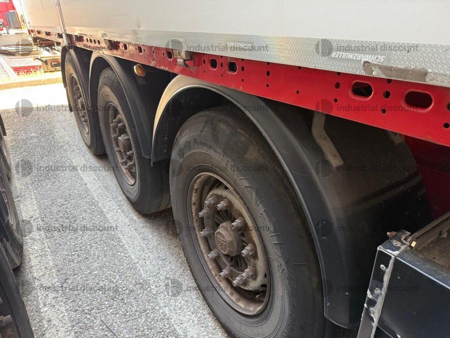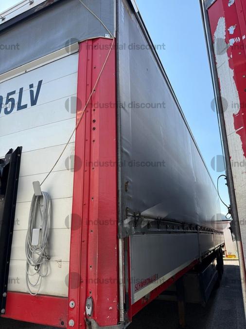 VENDITA DA AZIENDA ATTIVARimorchio Schmitz SO1 centinato alla franceseTargato AE22421Assali fissi Saf freno a disco, sospensioni pneumatiche, protezione posteriore paraincastro, mezzi parafanghi, luci laterali di ingombro, protezioni laterali para ciclisti, pannelli retro riflettenti. N. 6 pneumatici 385/65 R22.5 con 6 cerchi, porta cunei con cunei, porta ruota di scorta doppio a cesto. Nr. 2 Cassetti attrezzi. Dimensioni: lunghezza esterna: 13.900 mmlarghezza esterna: 2.550 mmTelaio zincato, fondo in pannello multistrato, ganci per ancoraggio del carico.Sponda anteriore para cabina altezza max rinforzata con lamiera interna. Piantoni centrali scorrevoli (3 + 3), nr. 2 file listelli laterali in lega, centina alza abbassa manuale idraulica a pompetta con spalliere laterali in alluminio (trave a L) tetto copri scopri, paracolpi posteriore. Porte posteriori gran Volume in lega leggera con 4 chiusure interne. Teli laterali scorrevoli colore nero. Chiusure con cricchetti e con tenditelo.