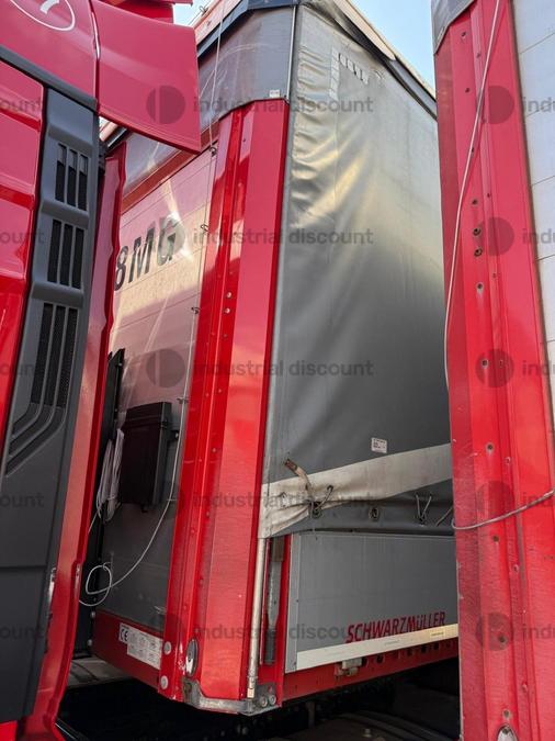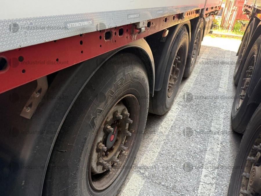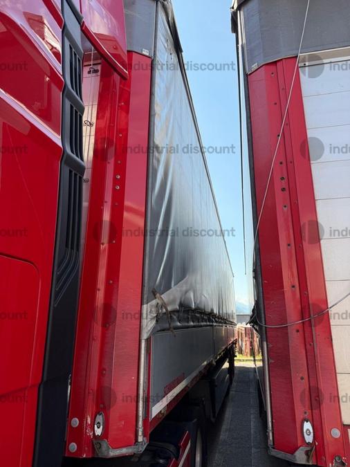 VENDITA DA AZIENDA ATTIVARimorchio Schmitz SO1 centinato alla franceseTargato AE22421Assali fissi Saf freno a disco, sospensioni pneumatiche, protezione posteriore paraincastro, mezzi parafanghi, luci laterali di ingombro, protezioni laterali para ciclisti, pannelli retro riflettenti. N. 6 pneumatici 385/65 R22.5 con 6 cerchi, porta cunei con cunei, porta ruota di scorta doppio a cesto. Nr. 2 Cassetti attrezzi. Dimensioni: lunghezza esterna: 13.900 mmlarghezza esterna: 2.550 mmTelaio zincato, fondo in pannello multistrato, ganci per ancoraggio del carico.Sponda anteriore para cabina altezza max rinforzata con lamiera interna. Piantoni centrali scorrevoli (3 + 3), nr. 2 file listelli laterali in lega, centina alza abbassa manuale idraulica a pompetta con spalliere laterali in alluminio (trave a L) tetto copri scopri, paracolpi posteriore. Porte posteriori gran Volume in lega leggera con 4 chiusure interne. Teli laterali scorrevoli colore nero. Chiusure con cricchetti e con tenditelo.