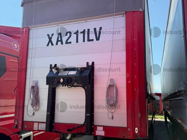 VENDITA DA AZIENDA ATTIVARimorchio Krone centinato, targa XA219GP, con sponda montacarichi, sospensioni pneumatiche.Anno 1° immatricolazione: 25/06/2008 Mezzi parafanghi in plastica. Pannelli retro riflettenti. Luci laterali ingombro. N. 6 pneumatici 385 / 65 R 22,5 6 cerchi in ferro. Dimensioni: Lunghezza 13.870 mm. compreso ingombri ant Larghezza esterna: 2.550 mm PTT 390 q.li Portata utile 317 q.li Fondo in pannello multistrato. Ganci incassati per ancoraggio del carico. Nr. 10 + 10 sedi per piantane laterali su logherine a sezione quadra 80 x 80 mm. Sponda anteriore para cabina in ferro rinforzato con pannello interno. Tetto copri scopri con binari in allumino (trave a L), porte posteriori in lega leggera con n° 4 chiusure interne, piantoni a leva centrali scorrevoli (3 + 3). Teli laterali scorrevoli con tenditelo.
