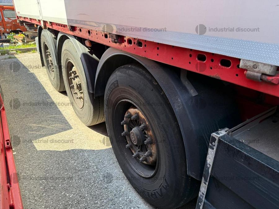 VENDITA DA AZIENDA ATTIVARimorchio Margaritelli Italia spaADR TIPO: FL-OX-AT –EX/II - EX/IIIImmatricolato: 2007Targa: AE37875Telaio: ZGPM300010Y003340 Assali SAF con freno a disco, terzo asse fisso, primo asse sollevabile, sospensioni pneumatiche. Protezione posteriore para incastro. Parafanghi a norme. Luci laterali di ingombro. Protezioni laterali para ciclisti. Porta ruota di scorta doppio a cesto. Porta listelli sotto telaio. Dimensioni:Larghezza esterna: 2.550 mmAltezza utile interna 2710 mm collo da 120 mmptt 38000 kgportata utile 31300 kgLunghezza esterna: 13.720 mmBUCA COILS da mt 8.90 con sedi per piantane e piantane interno buca. Fondo in pannello multistrato marino. Ganci per ancoraggio del carico. Sponda anteriore para cabina altezza massima in acciaio rinforzata internamente con pannello multistrato. Centinato alla francese. Piantoni centrali scorrevoli ( 3 + 3 ). Nr. 5 file di listelli laterali in legno. Centina Alza abbassa a leve nei 4 angoli con spalliere laterali in alluminio (trave a L) - Tetto copri scopri. Paracolpi posteriore. Porte posteriori altezza massima gran Volume con 4 chiusure interne. Teli laterali scorrevoli con tenditelo colore grigio con chiusura cricchetti in acciaio diretti. Revisione annuale scaduta Scarica i documenti dalla sezione documentazione lotto