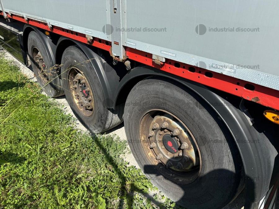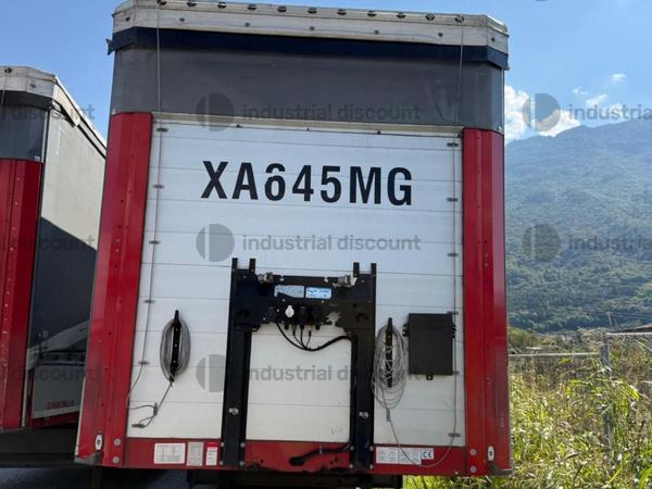 VENDITA DA AZIENDA ATTIVARimorchio Krone centinato, targa XA219GP, con sponda montacarichi, sospensioni pneumatiche.Anno 1° immatricolazione: 25/06/2008 Mezzi parafanghi in plastica. Pannelli retro riflettenti. Luci laterali ingombro. N. 6 pneumatici 385 / 65 R 22,5 6 cerchi in ferro. Dimensioni: Lunghezza 13.870 mm. compreso ingombri ant Larghezza esterna: 2.550 mm PTT 390 q.li Portata utile 317 q.li Fondo in pannello multistrato. Ganci incassati per ancoraggio del carico. Nr. 10 + 10 sedi per piantane laterali su logherine a sezione quadra 80 x 80 mm. Sponda anteriore para cabina in ferro rinforzato con pannello interno. Tetto copri scopri con binari in allumino (trave a L), porte posteriori in lega leggera con n° 4 chiusure interne, piantoni a leva centrali scorrevoli (3 + 3). Teli laterali scorrevoli con tenditelo.