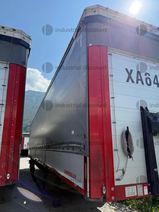 VENDITA DA AZIENDA ATTIVARimorchio Schmitz SO1 centinato alla franceseTargato AE22421Assali fissi Saf freno a disco, sospensioni pneumatiche, protezione posteriore paraincastro, mezzi parafanghi, luci laterali di ingombro, protezioni laterali para ciclisti, pannelli retro riflettenti. N. 6 pneumatici 385/65 R22.5 con 6 cerchi, porta cunei con cunei, porta ruota di scorta doppio a cesto. Nr. 2 Cassetti attrezzi. Dimensioni: lunghezza esterna: 13.900 mmlarghezza esterna: 2.550 mmTelaio zincato, fondo in pannello multistrato, ganci per ancoraggio del carico.Sponda anteriore para cabina altezza max rinforzata con lamiera interna. Piantoni centrali scorrevoli (3 + 3), nr. 2 file listelli laterali in lega, centina alza abbassa manuale idraulica a pompetta con spalliere laterali in alluminio (trave a L) tetto copri scopri, paracolpi posteriore. Porte posteriori gran Volume in lega leggera con 4 chiusure interne. Teli laterali scorrevoli colore nero. Chiusure con cricchetti e con tenditelo.
