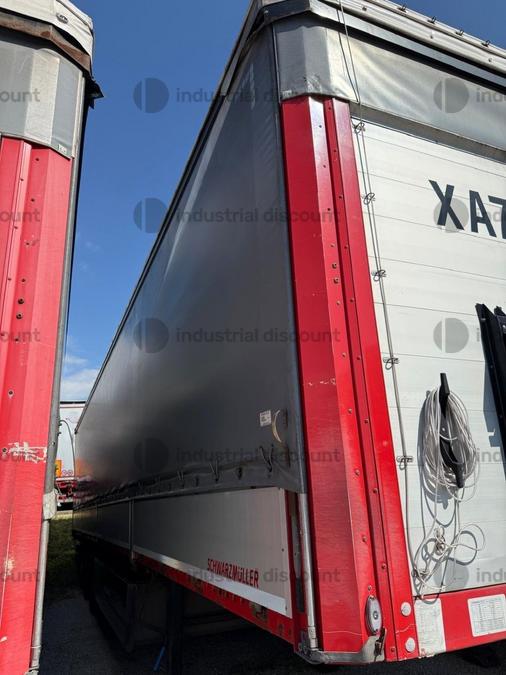 VENDITA DA AZIENDA ATTIVARimorchio Schmitz SO1 centinato alla franceseTargato AE22421Assali fissi Saf freno a disco, sospensioni pneumatiche, protezione posteriore paraincastro, mezzi parafanghi, luci laterali di ingombro, protezioni laterali para ciclisti, pannelli retro riflettenti. N. 6 pneumatici 385/65 R22.5 con 6 cerchi, porta cunei con cunei, porta ruota di scorta doppio a cesto. Nr. 2 Cassetti attrezzi. Dimensioni: lunghezza esterna: 13.900 mmlarghezza esterna: 2.550 mmTelaio zincato, fondo in pannello multistrato, ganci per ancoraggio del carico.Sponda anteriore para cabina altezza max rinforzata con lamiera interna. Piantoni centrali scorrevoli (3 + 3), nr. 2 file listelli laterali in lega, centina alza abbassa manuale idraulica a pompetta con spalliere laterali in alluminio (trave a L) tetto copri scopri, paracolpi posteriore. Porte posteriori gran Volume in lega leggera con 4 chiusure interne. Teli laterali scorrevoli colore nero. Chiusure con cricchetti e con tenditelo.