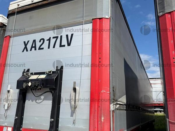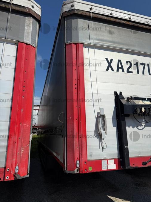 VENDITA DA AZIENDA ATTIVARimorchio Schmitz SO1 centinato alla franceseTargato AE22421Assali fissi Saf freno a disco, sospensioni pneumatiche, protezione posteriore paraincastro, mezzi parafanghi, luci laterali di ingombro, protezioni laterali para ciclisti, pannelli retro riflettenti. N. 6 pneumatici 385/65 R22.5 con 6 cerchi, porta cunei con cunei, porta ruota di scorta doppio a cesto. Nr. 2 Cassetti attrezzi. Dimensioni: lunghezza esterna: 13.900 mmlarghezza esterna: 2.550 mmTelaio zincato, fondo in pannello multistrato, ganci per ancoraggio del carico.Sponda anteriore para cabina altezza max rinforzata con lamiera interna. Piantoni centrali scorrevoli (3 + 3), nr. 2 file listelli laterali in lega, centina alza abbassa manuale idraulica a pompetta con spalliere laterali in alluminio (trave a L) tetto copri scopri, paracolpi posteriore. Porte posteriori gran Volume in lega leggera con 4 chiusure interne. Teli laterali scorrevoli colore nero. Chiusure con cricchetti e con tenditelo.