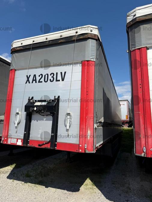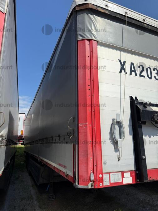 VENDITA DA AZIENDA ATTIVARimorchio Schmitz SO1 centinato alla franceseTargato AE22421Assali fissi Saf freno a disco, sospensioni pneumatiche, protezione posteriore paraincastro, mezzi parafanghi, luci laterali di ingombro, protezioni laterali para ciclisti, pannelli retro riflettenti. N. 6 pneumatici 385/65 R22.5 con 6 cerchi, porta cunei con cunei, porta ruota di scorta doppio a cesto. Nr. 2 Cassetti attrezzi. Dimensioni: lunghezza esterna: 13.900 mmlarghezza esterna: 2.550 mmTelaio zincato, fondo in pannello multistrato, ganci per ancoraggio del carico.Sponda anteriore para cabina altezza max rinforzata con lamiera interna. Piantoni centrali scorrevoli (3 + 3), nr. 2 file listelli laterali in lega, centina alza abbassa manuale idraulica a pompetta con spalliere laterali in alluminio (trave a L) tetto copri scopri, paracolpi posteriore. Porte posteriori gran Volume in lega leggera con 4 chiusure interne. Teli laterali scorrevoli colore nero. Chiusure con cricchetti e con tenditelo.