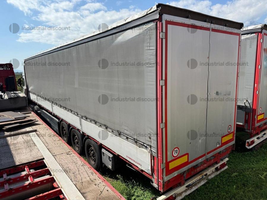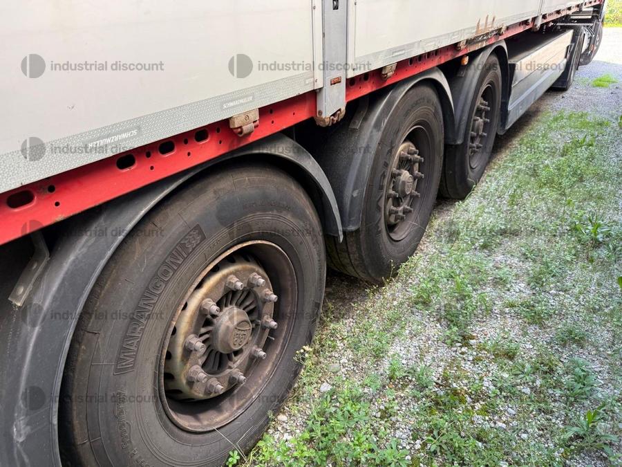 VENDITA DA AZIENDA ATTIVARimorchio Schmitz SO1 centinato alla franceseTargato AE22421Assali fissi Saf freno a disco, sospensioni pneumatiche, protezione posteriore paraincastro, mezzi parafanghi, luci laterali di ingombro, protezioni laterali para ciclisti, pannelli retro riflettenti. N. 6 pneumatici 385/65 R22.5 con 6 cerchi, porta cunei con cunei, porta ruota di scorta doppio a cesto. Nr. 2 Cassetti attrezzi. Dimensioni: lunghezza esterna: 13.900 mmlarghezza esterna: 2.550 mmTelaio zincato, fondo in pannello multistrato, ganci per ancoraggio del carico.Sponda anteriore para cabina altezza max rinforzata con lamiera interna. Piantoni centrali scorrevoli (3 + 3), nr. 2 file listelli laterali in lega, centina alza abbassa manuale idraulica a pompetta con spalliere laterali in alluminio (trave a L) tetto copri scopri, paracolpi posteriore. Porte posteriori gran Volume in lega leggera con 4 chiusure interne. Teli laterali scorrevoli colore nero. Chiusure con cricchetti e con tenditelo.