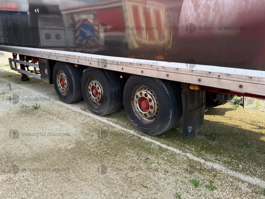 VENDITA DA AZIENDA ATTIVARimorchio Margaritelli Italia spaADR TIPO: FL-OX-AT –EX/II - EX/IIIImmatricolato: 2007Targa: AE37875Telaio: ZGPM300010Y003340 Assali SAF con freno a disco, terzo asse fisso, primo asse sollevabile, sospensioni pneumatiche. Protezione posteriore para incastro. Parafanghi a norme. Luci laterali di ingombro. Protezioni laterali para ciclisti. Porta ruota di scorta doppio a cesto. Porta listelli sotto telaio. Dimensioni:Larghezza esterna: 2.550 mmAltezza utile interna 2710 mm collo da 120 mmptt 38000 kgportata utile 31300 kgLunghezza esterna: 13.720 mmBUCA COILS da mt 8.90 con sedi per piantane e piantane interno buca. Fondo in pannello multistrato marino. Ganci per ancoraggio del carico. Sponda anteriore para cabina altezza massima in acciaio rinforzata internamente con pannello multistrato. Centinato alla francese. Piantoni centrali scorrevoli ( 3 + 3 ). Nr. 5 file di listelli laterali in legno. Centina Alza abbassa a leve nei 4 angoli con spalliere laterali in alluminio (trave a L) - Tetto copri scopri. Paracolpi posteriore. Porte posteriori altezza massima gran Volume con 4 chiusure interne. Teli laterali scorrevoli con tenditelo colore grigio con chiusura cricchetti in acciaio diretti. Revisione annuale scaduta Scarica i documenti dalla sezione documentazione lotto