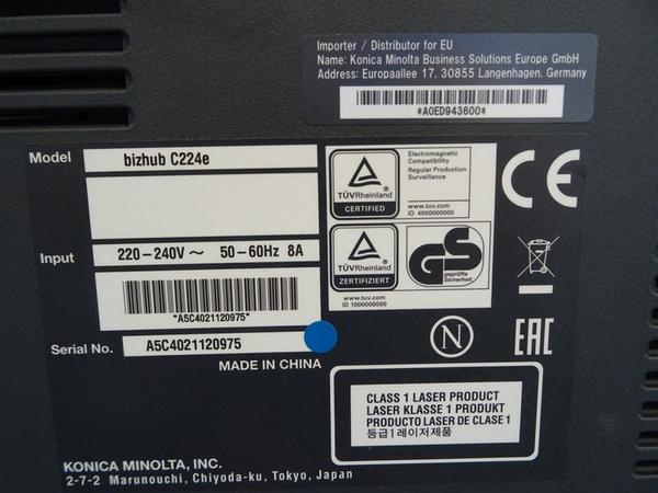 Nr 1. MULTIFUNZIONE KONICA MINOLTA BIZHUB C224 MATR. A5C4021120975