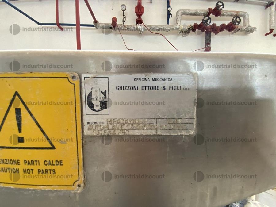 Sterilizzatore marca Ghizzoni da 8.000 litri, anno 1990.NOTE PER RITIRO:- tempistica massima prevista per lo svolgimento delle attività di ritiro dal giorno concordato: 2 giorni