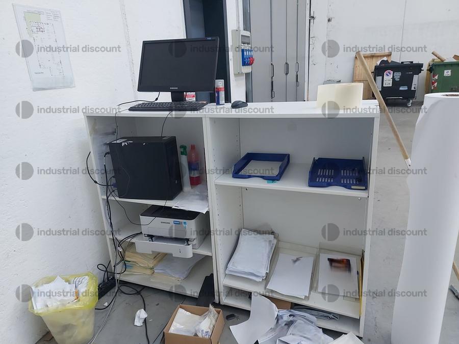 Lotto composto da strumenti di stampa e attrezzature per le industrie grafiche, quali ad esempio: plotter marca Summa, reggiatrice semiautomatica, plotter marca Mutoh, scaffalature varie, stampante multifunzione Xerox, tavoli carrellati, piani di lavoro, asciugatori ad aria carrellati, taglierina, laminatore marca Sigma Sivo, e molto altro.