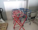 -n.5 strutture carrellate in metallo rosso porta sacchi