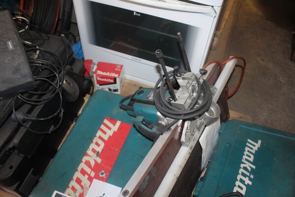 Lotto composto da: 1 tc aria compressa silent K30 T5.5 Dari, 1 fresatrice Makita RP2300FC, 1 trapano avvitatore a batteria Makita, 1 stampante Epson multifunzione Workforce WF-7610, 1 tornio Grazioli tipo Dania.
