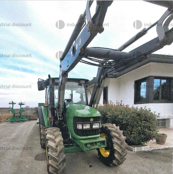 Trattore John Deere 5100 con pala caricatrice. Dotato di benna e forche per fieno Kw 74, CV 100