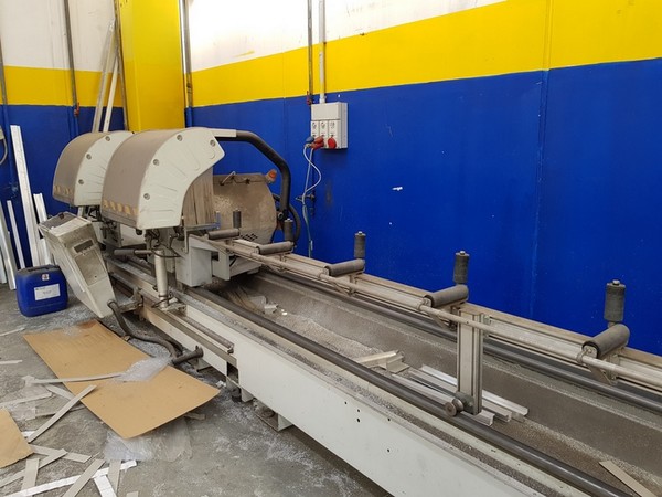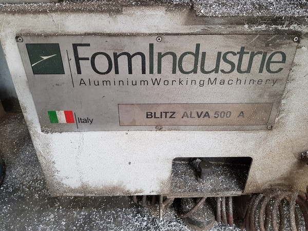 Una troncatrice marca FOM mod. Blitz Alva 500A; dimensioni cm. 800x120xH160